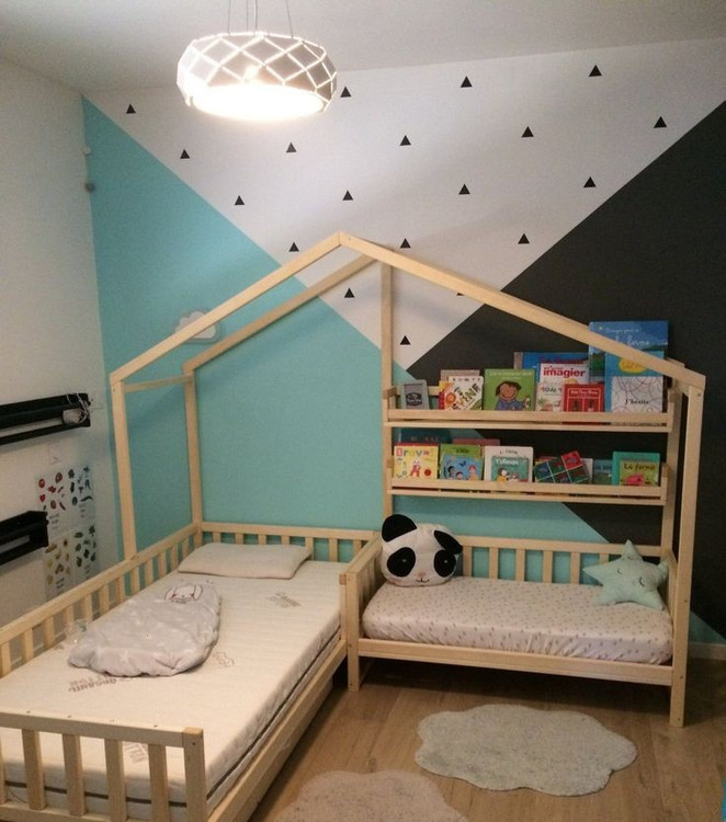 تخت خواب دوتایی کودک و نوجوان با کتابخانه