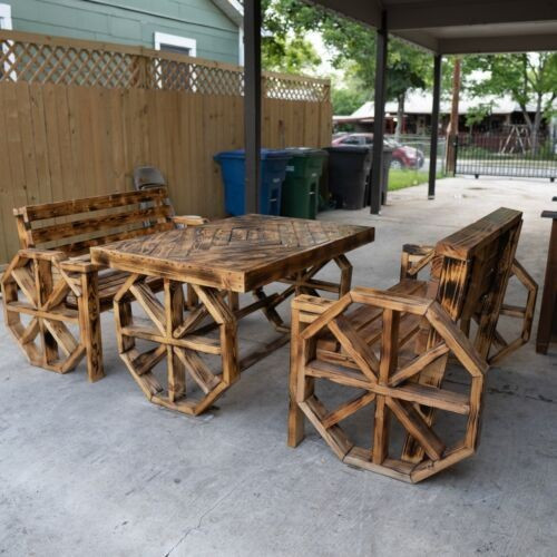 میز و صندلی باغی چوبی مدل کالسکه ای