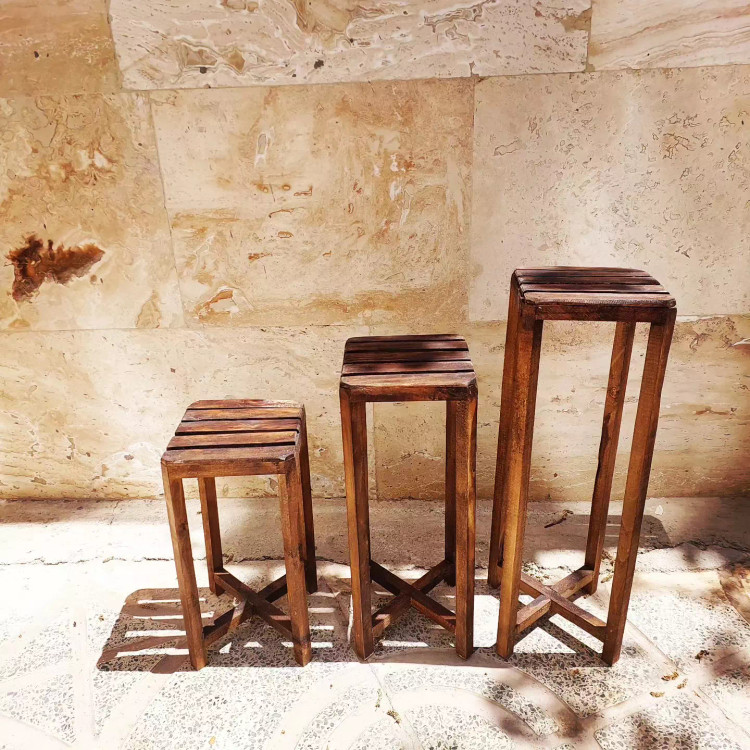 پایه گلدان چوبی ( استند) جنس چوب روسی قابل استفاده از دوطبقه در سایزبندی ۳ تایی