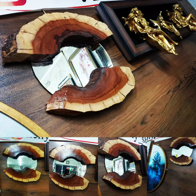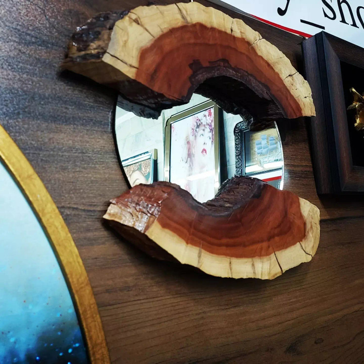 آینه دیواری چوبی روستیک با چوب زیبای سنجد قطر آینه ۳۰ آبگریز و کار شده
